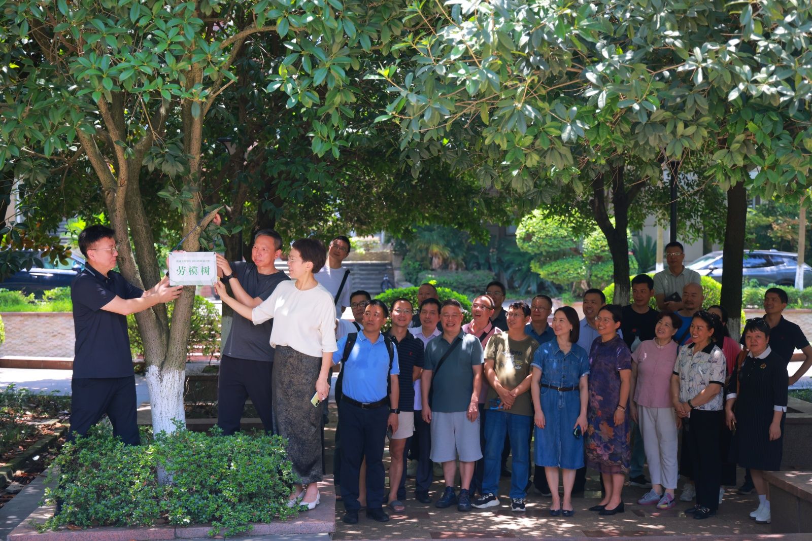 最后,为感恩母校培育、传承劳模精神与工匠品格,班级中涌现的两位全国五一劳动奖章获得者胡彬、杨德正,和返校同学一起进行了茶园校区beat365在线体育“劳模树”认捐。
