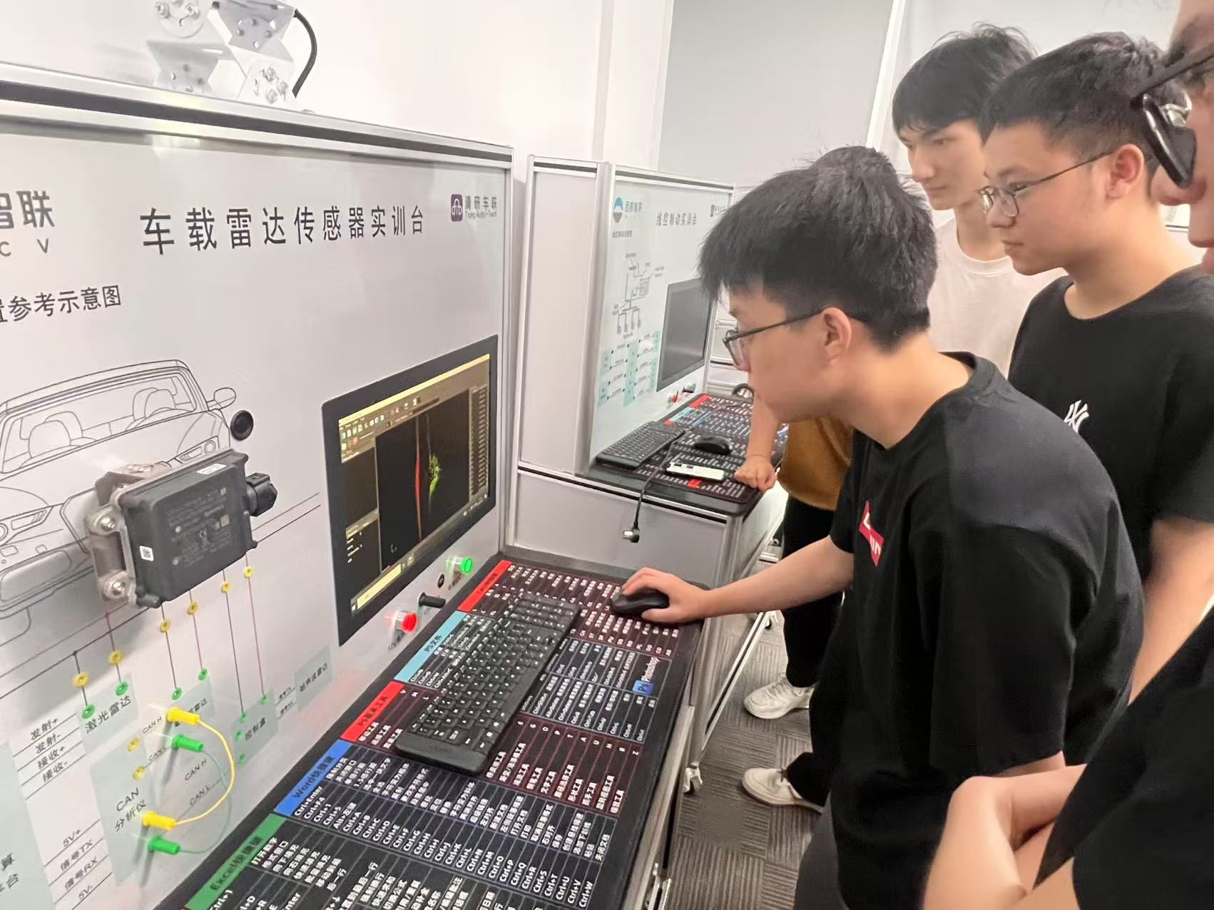 在西部智联科学谷基地,企业工程师们为同学们介绍了智能车辆测试技术专业知识与人才需求。同学们通过在车载雷达传感器实训台、视觉感知传感器实训台、线控转向实训台和线控制动实训台上试操作,以及和工程师面对面的交流,加深了对自动驾驶汽车传感器技术、自动驾驶汽车线控技术、车载通信技术和车路协同技术的理解。