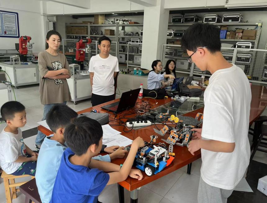 为保证活动的顺利进行,研究所的研究生们对参观者进行了必要的设备安全知识培训及与机器人相关的储备知识,当参观者对机器人运行原理与机器人运行轨迹有了初步认识之后,对机器人及机器人电控系统拆装平台进行了详细的操作和讲解。