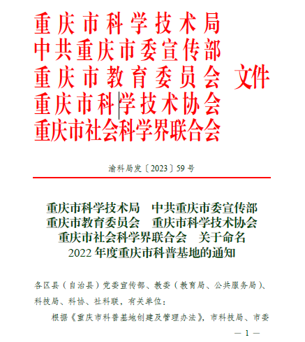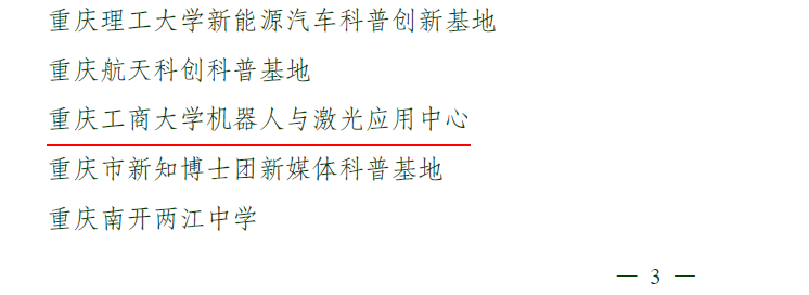 近日,由重庆市科学技术局、中共重庆市委宣传部、重庆市教育委员会、重庆市科学技术协会和重庆市社会科学界联合会审核认定,重庆工商大学“机器人与激光应用中心”获评为2022年度重庆市科普基地。
