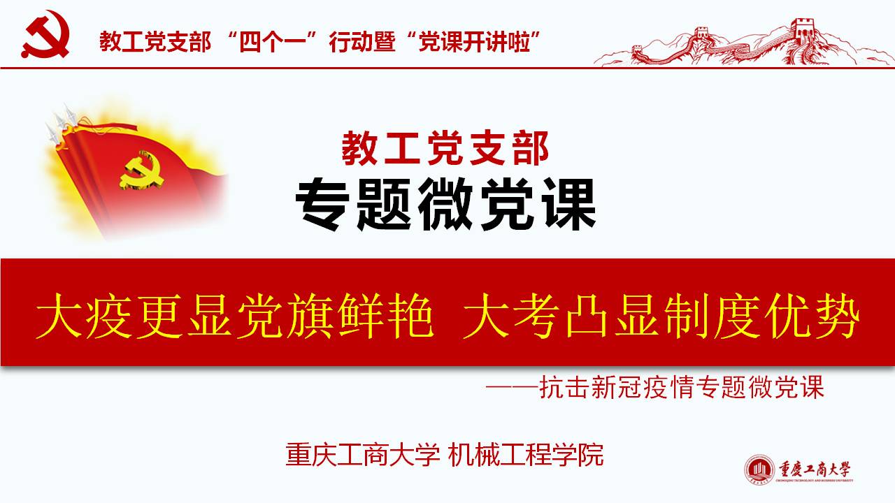 按公司“四个一”行动要求,经公司党总支安排,beat365在线体育教工党支部书记陈鹏开讲题为《大疫更显党旗鲜艳 大考凸显制度优势》的专题微党课。