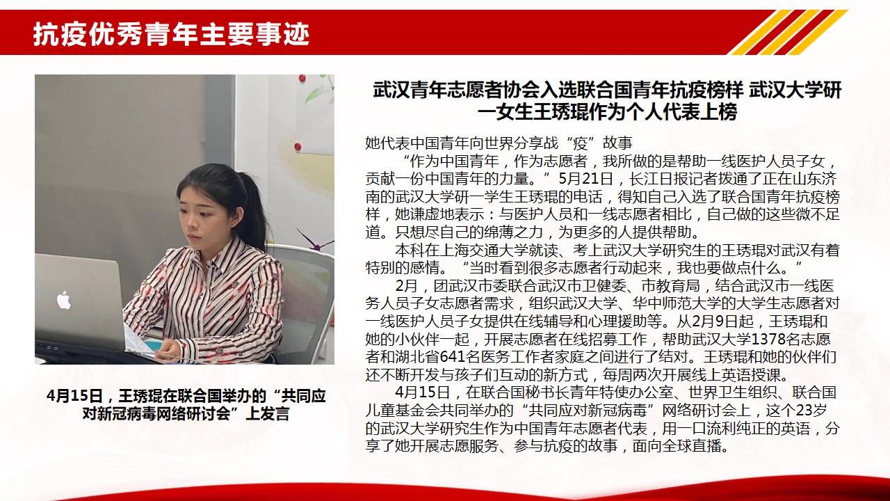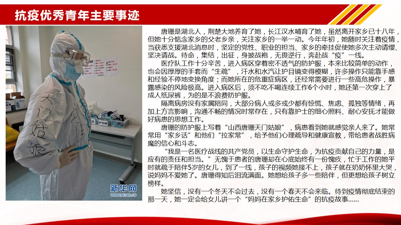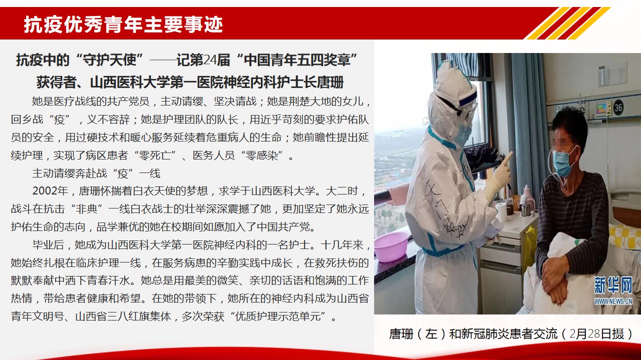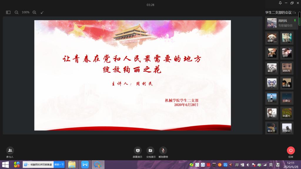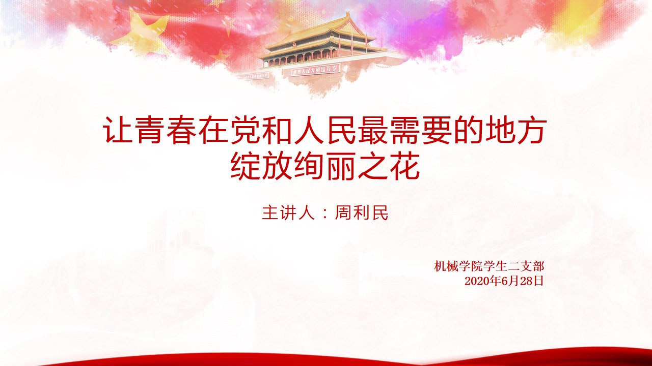 根据公司开展基层党组织常态化疫情防控“四个一”行动和“党课开讲啦”的通知,结合机械工程公司党总支的部署和要求,beat365在线体育员工二支部于6月28日通过企业微信在线方式开展了主题党课“让青春在党和人民最需要的地方绽放绚丽之花”。本次党课由支部书记周利民老师主讲,党课以疫情期间冲锋在前的几个典型的优秀青年鲜活的事例为序,带领支部党员再次把目光聚焦在疫情期间的志愿者身上,学习他们勇于担当、践行初心使命的精神。随后,结合《抗击新冠肺炎疫情的中国行动》白皮书,用一组组扎实的数据,带大家一起回顾了新冠肺炎疫情防控取得的显著成效。通过此次学习和总结,支部党员再次感受到了“中国力量”、“中国精神”、“中国社会主义制度的优越性”。抗击新冠肺炎疫情是一场大考,中国展现的出色的疫情防控能力,也为世界防疫树立了典范。