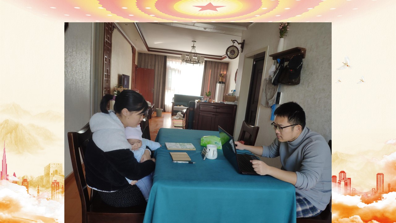 当飞机落地时,我总算是松了一口气,因为我们能够回到属于自己的家。到家后,社区的工作人员很快来家里测量体温,发放居家隔离告知书,我们一家三口开始了14天的居家隔离生活。记得在员工时代,导师在课堂上问我毕业以后想做什么工作,我回答的是“家庭主妇”。在疫情期间,我体验到了。在我看来,家庭主妇这个岗位并不轻松,但是能为家人付出,让家人享受更高质量的生活,是一种很实在的幸福。每天工作,学习,带娃,做饭,最踏实的事是看着员工每天在群里的自己及家人无感染的报告,最幸福的事是看着家中的小不点儿一天天的长大。