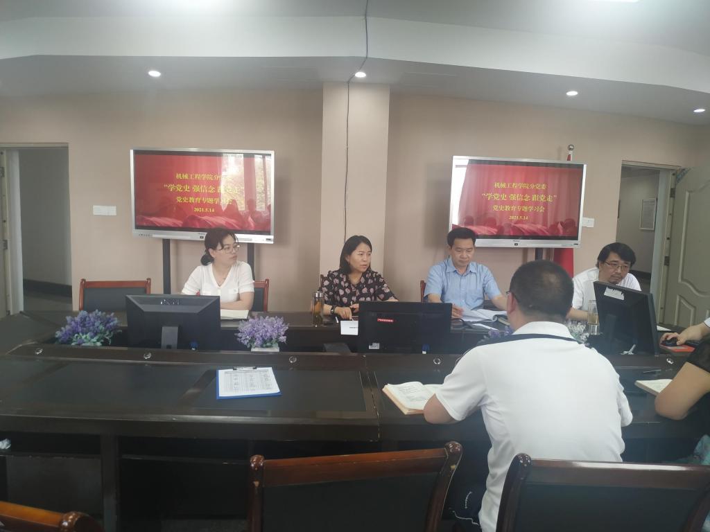 根据学院“党史学习教育”计划,在前期各支部学习的基础上,机械工程公司党委于5月14日组织全体教工党员开展了第一场学习体会交流活动,由教工三支部书记马毓同志分享党史学习体会。