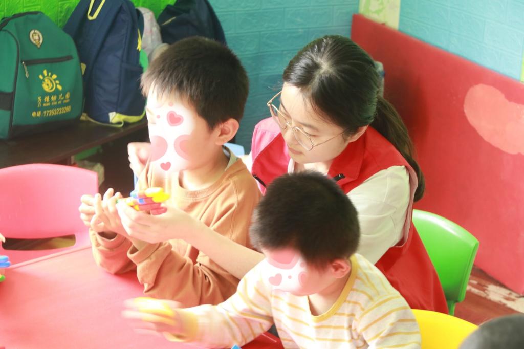 员工党员和志愿者们在老师的带领下走进课堂,协助老师对小朋友们开展日常训练课程。课程内容丰富多彩,有锻炼肢体协调能力的活动课、锻炼想象力的美术课、锻炼动手能力的手工课等。员工党员和志愿者们与小朋友一起伴随音乐有节奏舞动,一起在美术课上涂色创作,小朋友们还积极举手回答问题,课堂充满了快乐、温暖与感动。最后,大家一起合影留念,一张张定格的照片记录下志愿者们青春奉献的印记。