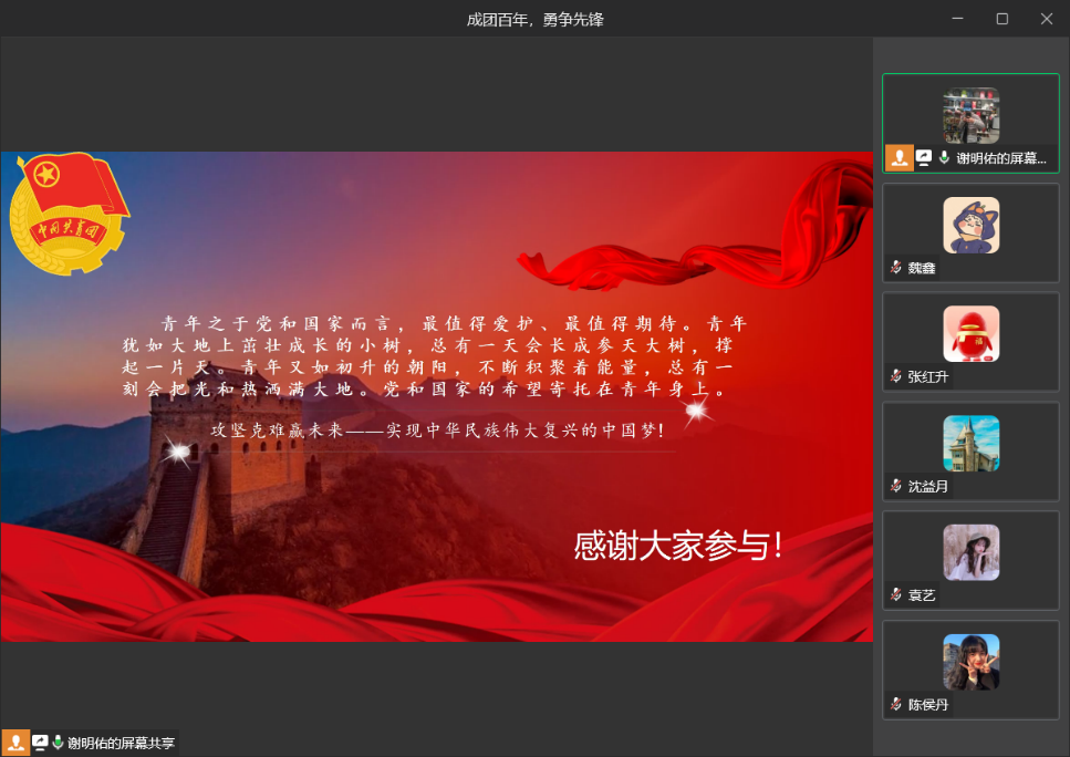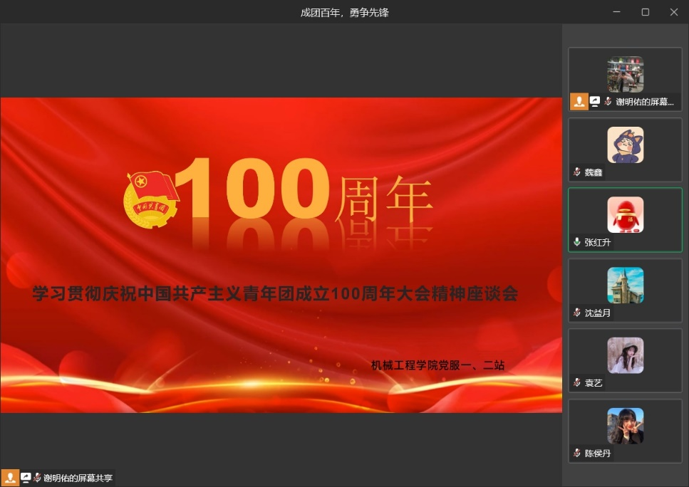 5月20日晚上7点,beat365在线体育员工党服工作站携手员工党支部,采用线上观影交流学习的方式,学习习近平总书记在庆祝中国共产主义青年团成立100周年大会上的重要讲话精神。公司陈春洁副书记带领与会入党积极分子和师生党员话心得、谈感想,切实让习总书记重要讲话精神入脑、入心。本次活动机械工程公司党服工作站130余名同学参加了会议。