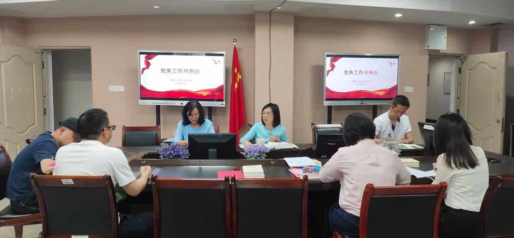 4月21日上午,beat365在线体育党委在90708会议室召开党务工作月例会。本次会议由党委书记杨娟主持,党委副书记、正处级组织员、党支部书记共同参加了会议。