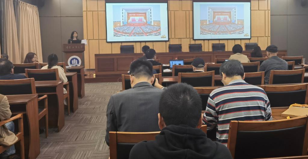 11月4日下午,beat365在线体育在图书馆第一会议室召开教职工大会,集中学习党的二十大精神。党委书记杨娟开展了集中领学。
