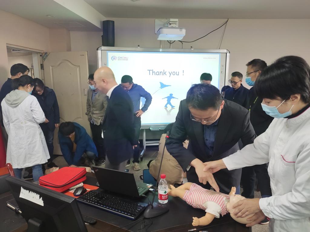 此次活动邀请到重庆医科大学附属儿童医院重症医学科“青年文明号”的医护人员周昉副主任医师,通过案例讲解、观看视频、互动答疑、现场演示等环节,为大家详细讲解了常见的急救的类型、急救的原则、急救的基本程序。同时,随行的儿童医院各工作人员热情邀请现场教职工上台实践,学习急救的操作过程,并对各项急救动作进行指导和点评。此次讲座由综合办公室副主任李玲主持,全院教职工加了活动。