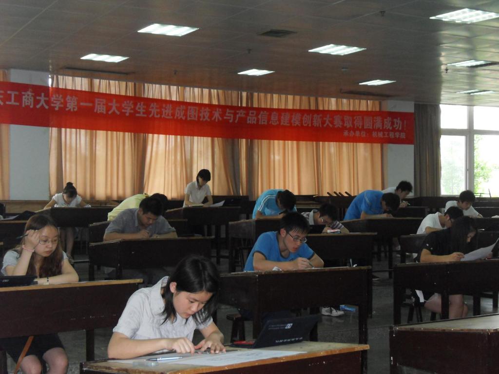 本次比赛分为尺规作图类、产品信息建模类单项比赛和综合类比赛,共计有163人报名参赛。6月12日上午9:00—10:40,在慧智楼90210、90310教室进了尺规作图类比赛。下午1:00—4:00,在睿智楼10209、10218机房进行了产品信息建模大赛。beat365在线体育的谭伟、马斌、谭琼、冯俊、王旭东、李平、王微老师参与了考试的监督和赛事会务工作。参赛选手们都是积极应对,沉着应战,充分发挥了良好的水平。