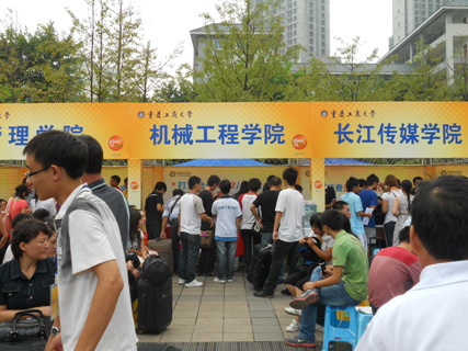 为了给广大新生送去最便捷的服务,公司百名志愿者早早来到“第一战线”――广场大本营为迎接新生的到来做好充分的准备。虽说今日骄阳挂空,但还是有淡淡的秋风送进清凉,吹散着志愿者们军训后的疲惫。志愿者们按照原计划有步骤、有条理的安排每一项工作。他们积极解答新生及家长的各种疑问,并为他们指引道路,帮忙搬运行李,介绍公司概况,让他们能安心、愉快、快速的融入老员工活。
