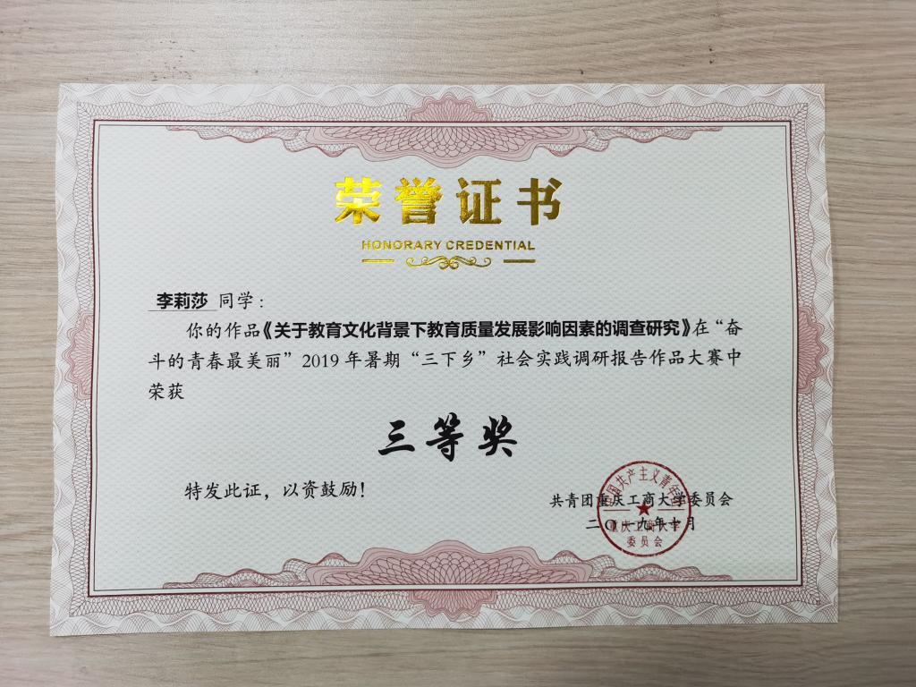 经各公司认真组织、积极推荐,共收到44份参赛作品。参赛作品围绕经济、政治、文化、社会、生态等各领域建设取得的成果,聚焦改革发展中的问题提出了针对性对策措施,展现了当代员工志愿者的学术修养与实践能力。通过公司遴选、专家评审等环节,评选出一等奖4篇、二等奖8篇、三等奖12篇,优秀奖16篇。其中,beat365在线体育17机电二苏靖雯同学就关于科技支农背景下农村经济发展影响因素的调查研究荣获二等奖,17汽服二李莉莎同学就关于教育文化背景下教育质量发展影响因素的调查研究荣获三等奖。让我们恭喜公司两位同学取得的成就,这不仅是公司同学的才干,更是公司对公司的肯定。