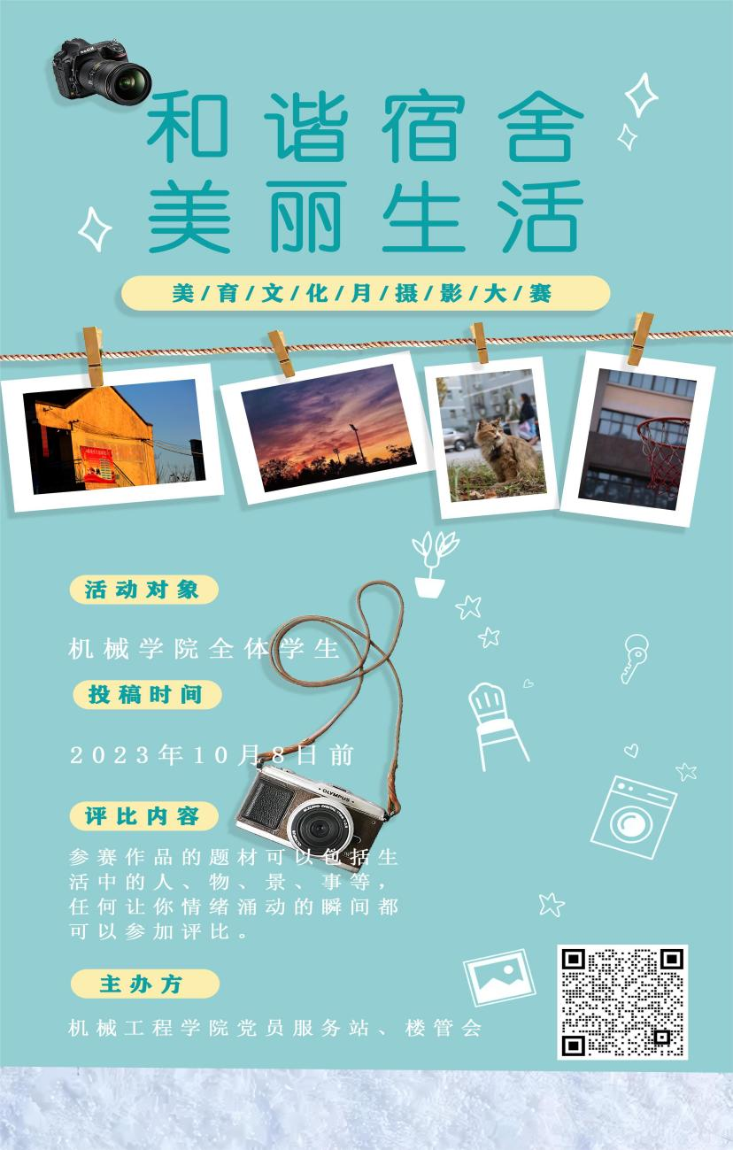 为构造和谐校园,缤纷宿舍氛围,展现青春活力以及增强老员工组织创作能力和老员工艺术与审美的交流、关注生活,激发老员工对摄影的兴趣和爱好,提升员工的审美情趣,营造和谐的校园氛围,进一步升华“一站式”员工社区建设的内涵。beat365在线体育于2023年9月29日至10月8日开展以“和谐宿舍,美丽生活”为主题的摄影活动。此次活动由机械工程公司党员服务站和楼管会联合开展。