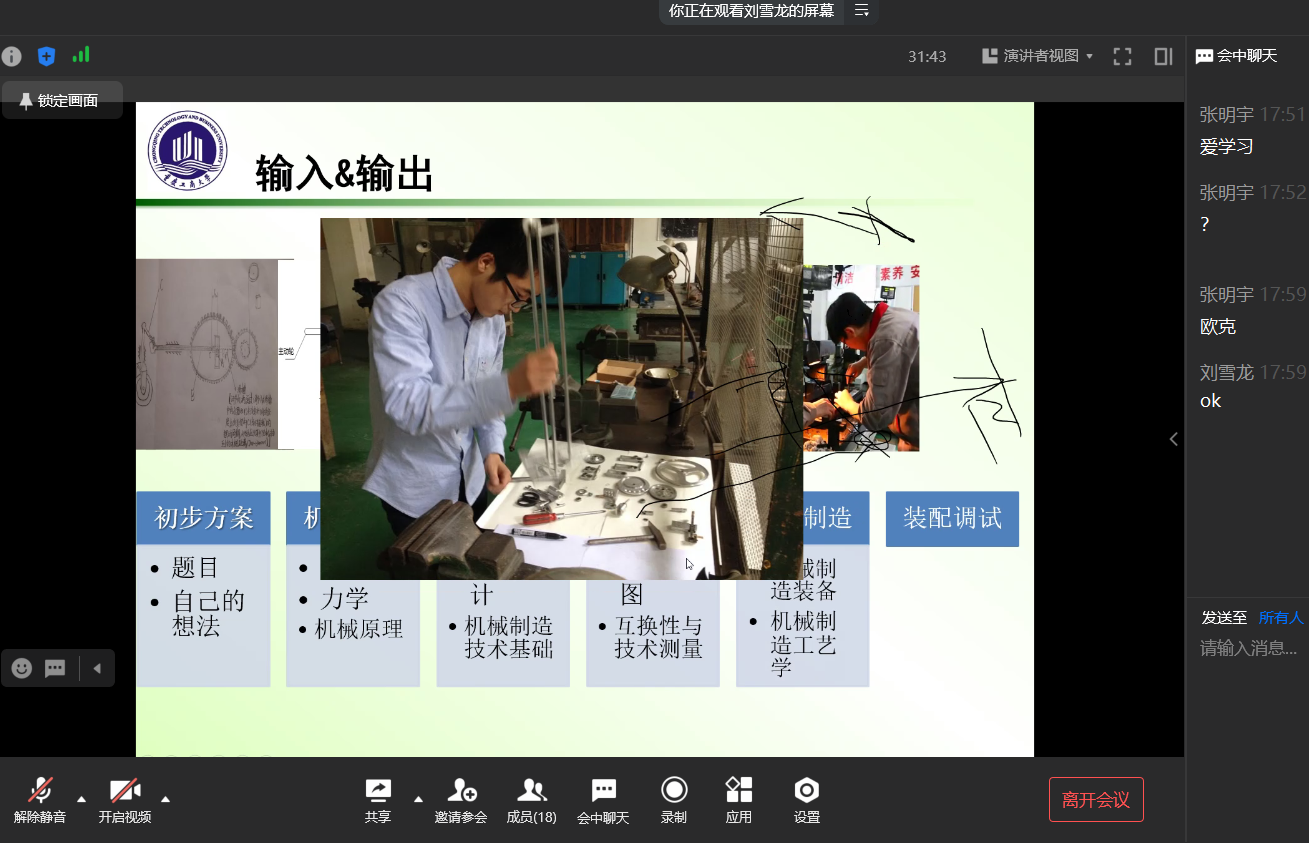 10月25日晚,机械创新设计大赛宣讲会在线上召开,会议邀请beat365在线体育机制系黄 勇 刚老师作为主讲师,全体参赛选手参会。会上,黄老师对本届大赛主题,比赛要求及规则进行了介绍,并提醒大家在设计时注意综合运用“机械原理”“机械设计”等课程所学的设计理论与方法,注重作品原理、功能和结构上的创新性。黄老师鼓励各参赛选手突破自我边界,勇敢尝试创新。