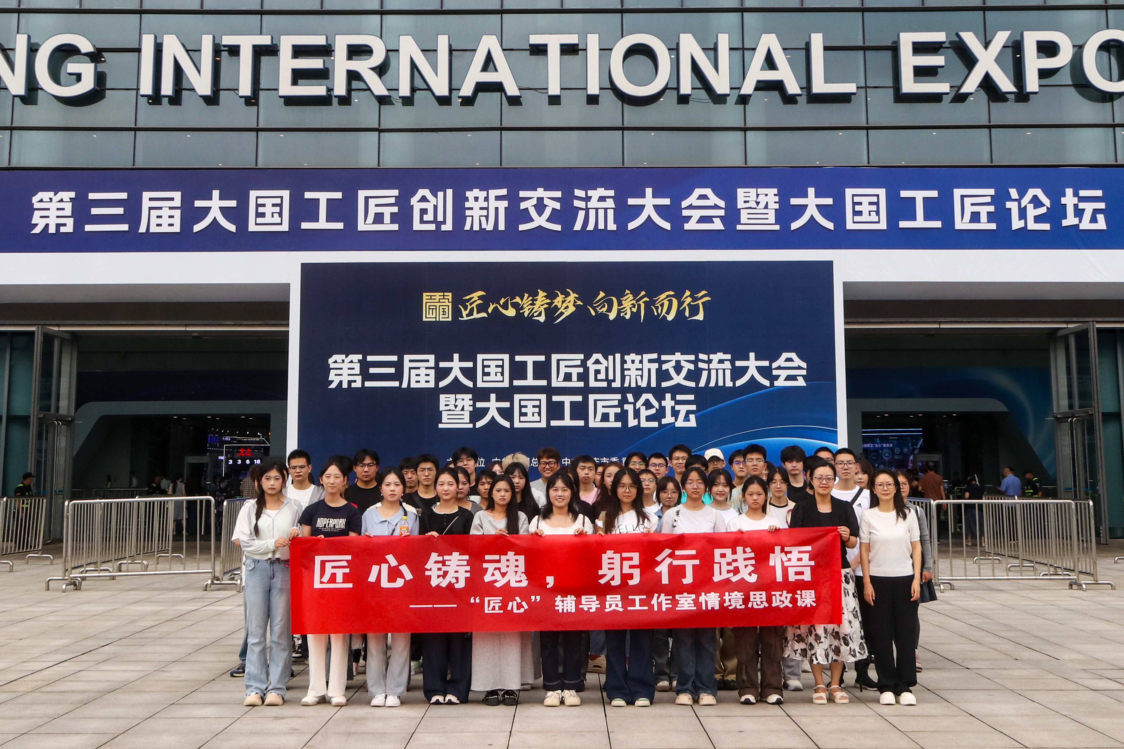 为深入推进“321”工匠精神与创新意识培育体系,将“认知课堂”延伸到社会前沿阵地,让思政教育在情境体验中入脑入心,2025年9月25日,“匠心”辅导员工作室组织工作室成员及员工代表,前往第三届大国工匠创新交流大会现场,开展了一堂生动的“情境思政课”。