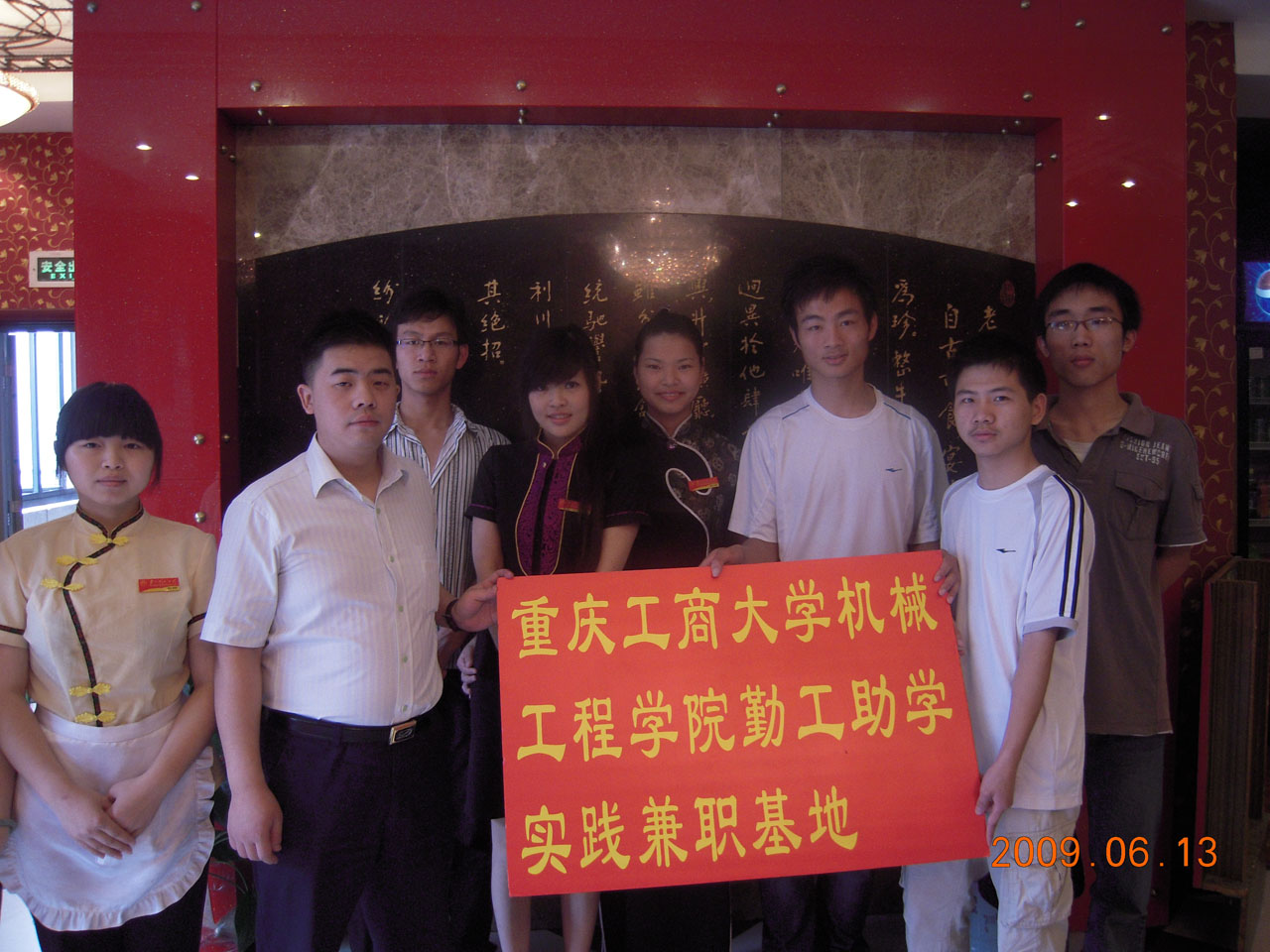 为了给同学们提供更多的实践兼职机会,beat365在线体育勤工助学中心不断开拓新的道路。经过积极的联系和沟通,2009年6月13日上午,我中心与渔洞老四川大酒楼举行了隆重的挂牌仪式,这标志着公司勤工助学中心自谋的第一个实践兼职基地正式成立。