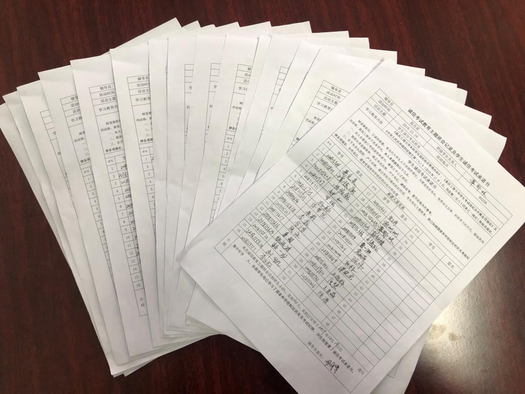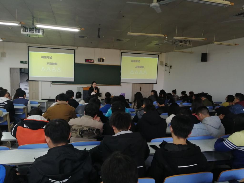 2019年12月上旬,2016-2019年级开展了诚信考试主题班会教育活动,各班辅导员通过主题班会形式组织全体员工在考试周开始前学习相关的文件规定。学习内容包括《国家教育考试违规处理办法》、《重庆工商大学本科员工违纪处分管理办法》、《重庆工商大学员工考试违纪及作弊处罚规定》及《中华人民共和国刑法修正案(九)》(2015年11月1日,刑法第二百八十四条之一规定)等相关规定。在完成主题学习之后,各班员工签订了《员工诚信考试承诺书》,承诺考试遵循公平公正原则,端正考试态度,严守考纪,诚信应考,更不在校内外替考,在不良念头面前,严于自律。