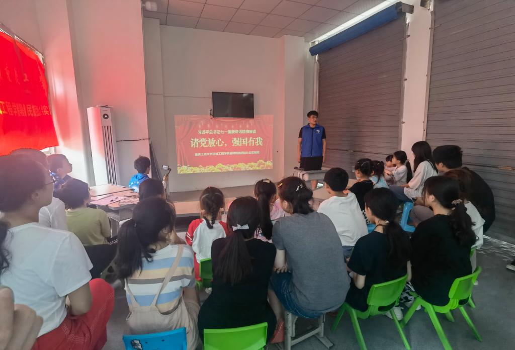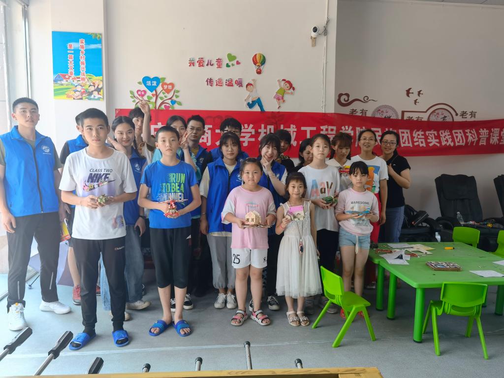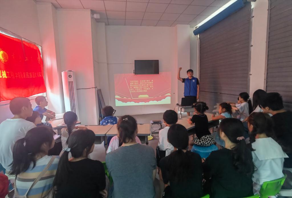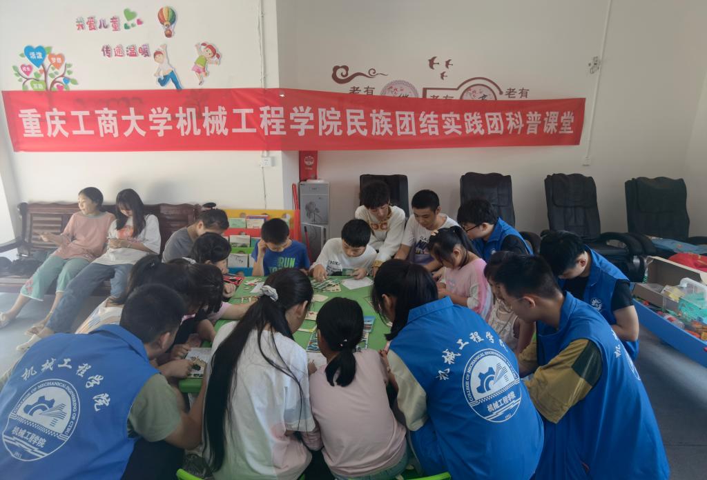 重庆工商大学beat365在线体育民族团结实践团成员7月13日为水口镇树荫村20余位留守儿童开展了丰富的主题活动。实践团开展了以“请党放心、强国有我”为主题的习近平总书记七一重要讲话精神解读活动,结合建党100周年青少年献词,号召大家听党话、感党恩、跟党走,同心向党,振兴国家。激情昂扬的献词点燃现场,孩子们和实践团成员们一起齐声朗诵“请党放心、强国有我”。党史故事会上,实践团成员藏族小伙马骁,生动的讲解了红军长征时发生在阿坝州的感人故事《牦牛革命》,故事听的大家热泪盈眶,孩子们和实践团成员一起在现场跳起了藏族锅庄舞,赢得了大家阵阵掌声。科普小课堂上,实践团成员围绕“3D打印”、“激光雕刻”、“寻迹小车”三方面进行了介绍,现场演示“寻迹小车”工作原理,并且开展了谁是“拼装大王”的激光雕刻拼接模型的拼装小比赛,激发了大家浓厚的科技兴趣。