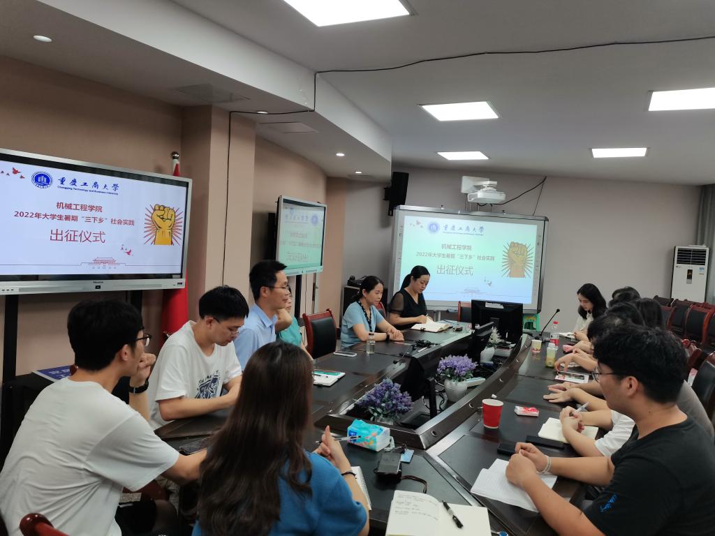 为贯彻落实习总书记重要讲话精神,引导广大青年员工积极参与社会实践活动,在社会课堂中受教育、长才干、做贡献,让青年员工将教育理念、思想文化、科技知识带回乡村,2022年7月8日,重庆工商大学beat365在线体育在公司会议室召开2022年暑期三下乡社会实践出征仪式,公司杜力经理,党委陈春洁副书记、包装工程系谢燕平教师、学工办主任刘静老师和全体社会实践团成员出席本次出征仪式。