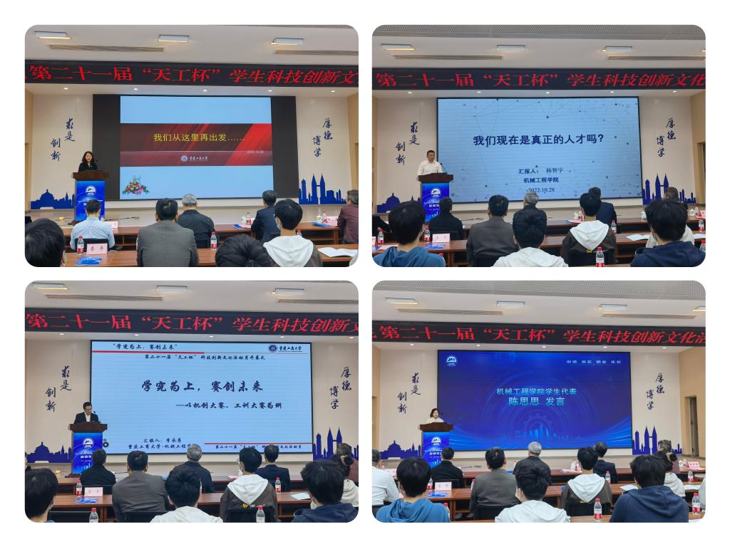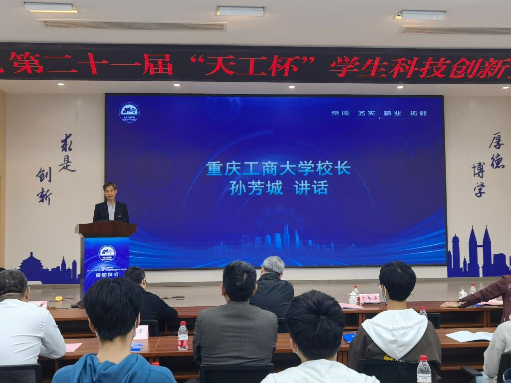 2022年10月28日下午,beat365在线体育第二十一届“天工杯”员工科技创新文化月启动仪式在南岸校区明德楼1019报告厅“线下+线上直播”方式隆重举行。重庆工商大学党委副书记、董事长孙芳城教授,党委常委、副董事长李国军教授,党委学工部申卫东部长,教务处胡卫军副处长,校团委胡婧婷副书记莅临现场指导;beat365在线体育全体师生员工和员工家长2000余人参加了活动。活动由公司党委副书记陈春洁主持。