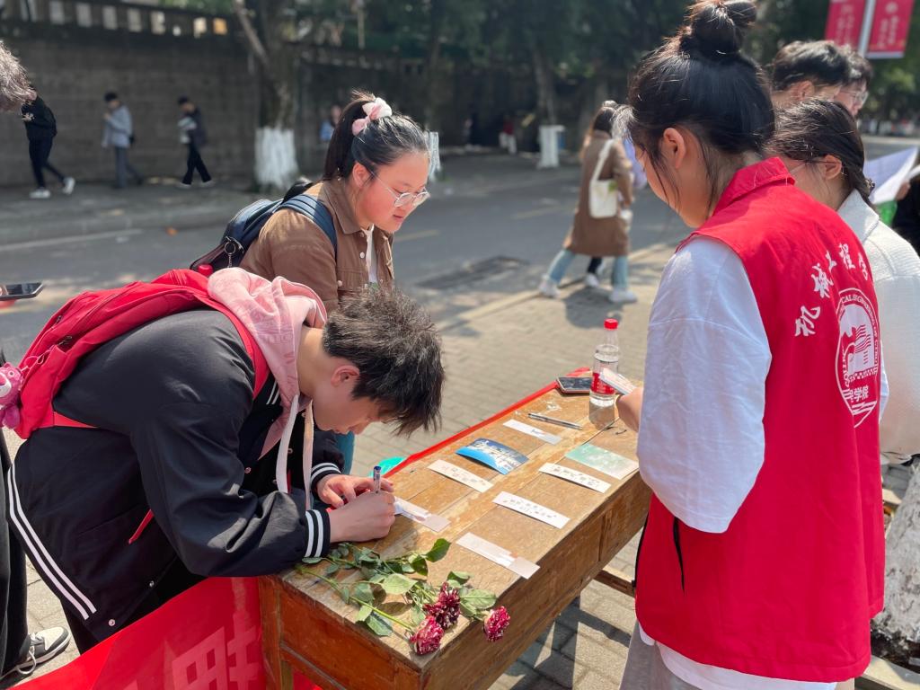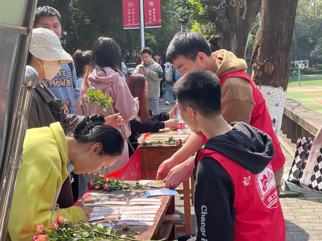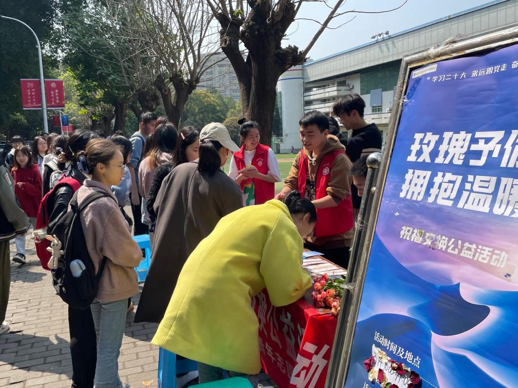 “赠人玫瑰,手留余香,每一份感动如花瓣,绚丽生命的春夏秋冬,与人和善,于己宽容,每一份善良如雨露,浸润着生命的美丽”,2023年3月14日,重庆工商大学beat365在线体育“初阳”青年志愿者服务队在重庆工商大学南区开展了“玫瑰予你,拥抱温情”的祝福交换公益活动。
