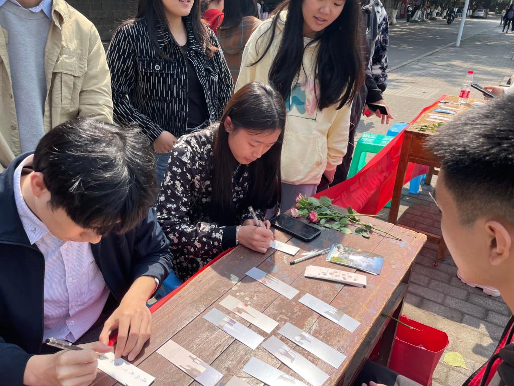 “心扉洞开,书信传声。小小的明信片,承载着满满的温情与信任。”这次“玫瑰予你,拥抱温情”祝福交换公益活动,拉进了同学们之间距离,以明信片交流的方式,让同学们收获了幸福和温暖。