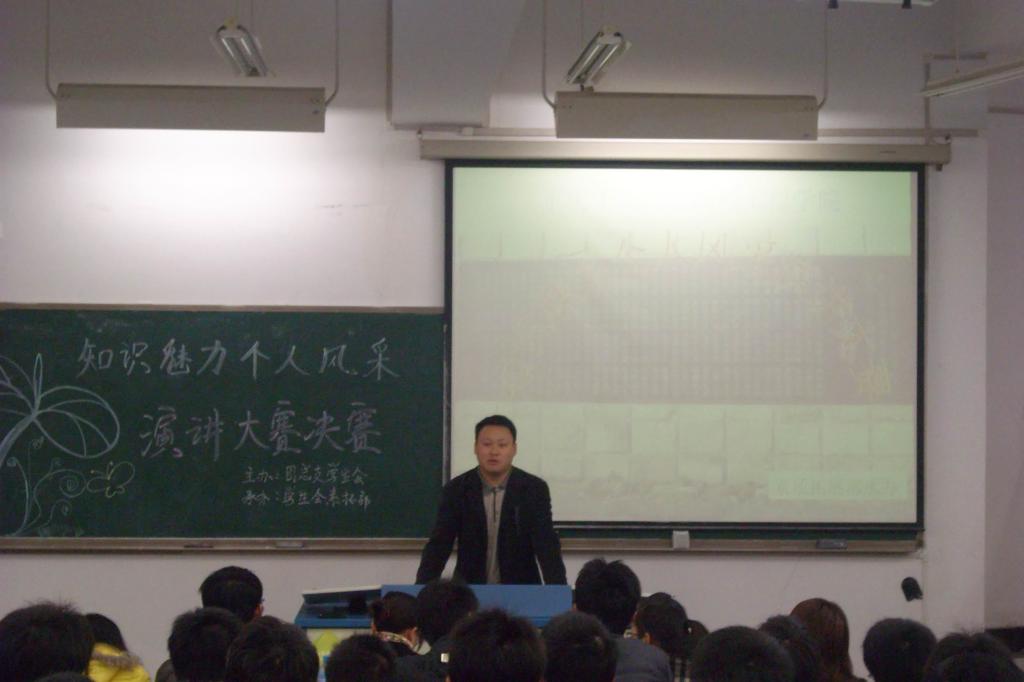 11月27日下午2:00,beat365在线体育团总支员工会素质拓展部“知识魅力个人风采”演讲比赛在90226教室隆重举行。公司党总支副书记刘洋副教授应邀出席了这次比赛。09级辅导员张春媚老师、员工会副主席李应奇、社团联合会副会长黄永涛、外语公司员工会主席费青、计信公司员工会副书记王雪晴、文艺部部长李洁担任这次比赛的评委。