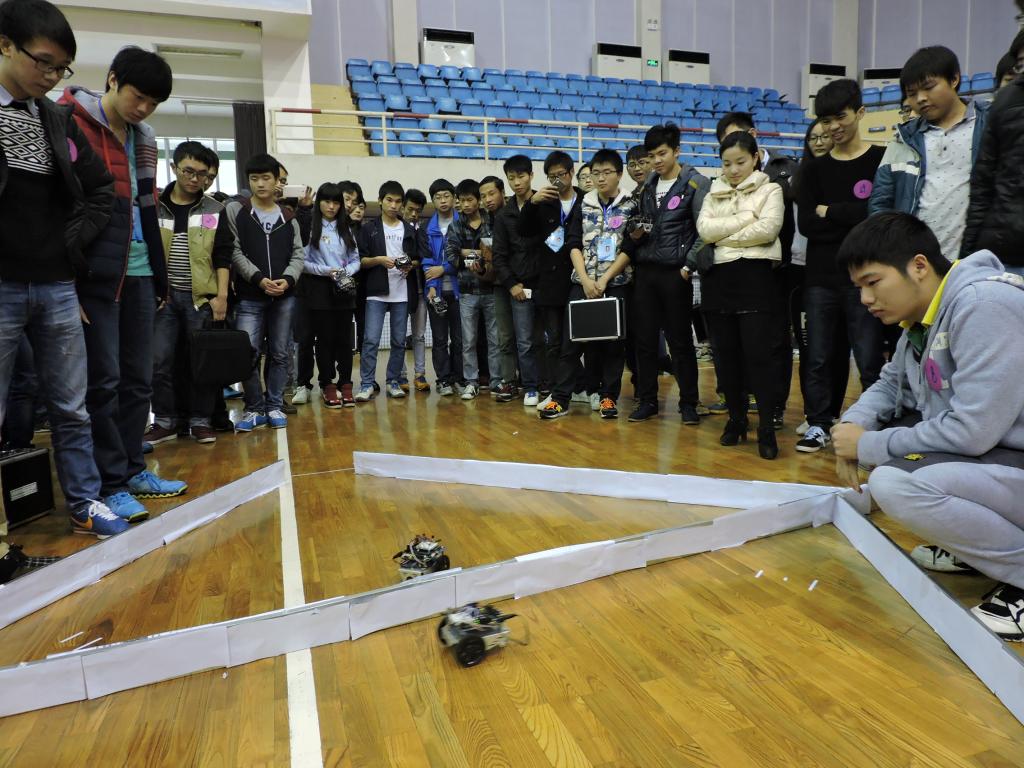 ,重块落下后,须被小车承载并同小车一起运动,不允许掉落。参赛小车要求具有转向控制机构,且此转向控制机构具有可调节功能,以适应放有不同间距障碍物的竞赛场地。小车行走的路线分别为走“S”型路线的小车和走“8字”型路线的小车,跑得距离最长,且绕过障碍物最多的小车获胜。该项比赛从具体设计、材料选用以及加工制作均由参赛员工自主完成。为了达到最佳行驶状态,选手们从暑假到现在,已备战5个多月,在现场更是认真细致地调试小车,力争从7个参赛队伍中脱颖而出。