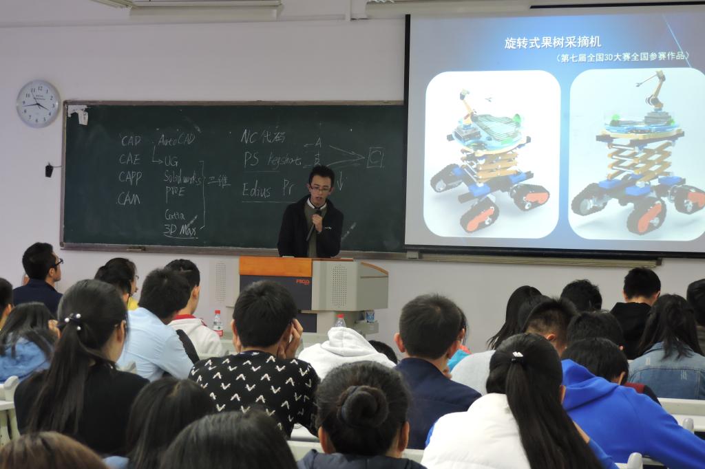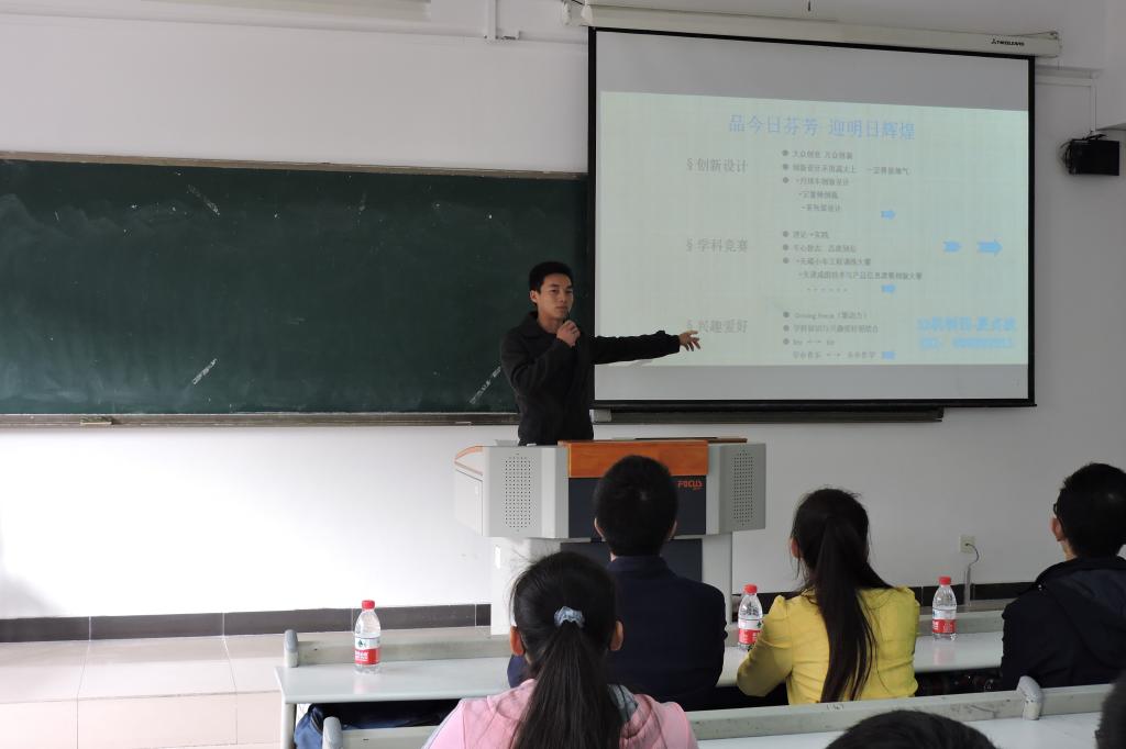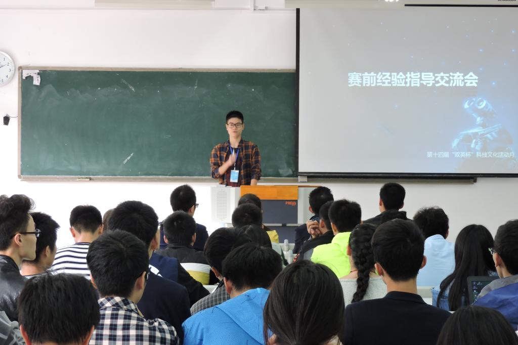 赛前指导交流会特地邀请了夏贞波和彭良怀两位优秀学长来对参赛人员进行指导首先,科技协会会长王宇播放他团队去年历时九个月的小车创作过程,给我们分享他历时九个月的赛事状况,从起初一个个零件到最后组合而成的小车,离不开团队的辛勤努力和老师的默默陪伴与帮助。接着12级学长夏贞波分享他比赛过程中各种经与感受,为我们讲解了关于创新设计、学科竞赛、兴趣爱好三个方面的要点,他表明设计不一定要高大上可是一定要接地气他还分享了他在历年比赛的经历与感悟,列举了一系列要用到的技能,让同学们受益匪浅。最后12级学长彭怀良讲解各项赛事注意事项及他自己独特的想法,使同学们更深的了解比赛。