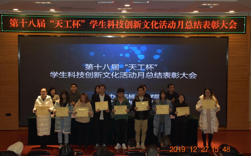 员工科技创新文化活动月活动是公司的品牌活动之一,由员工全程赞助。历时两个多月,包括科技作品小发明小创作比赛、包装结构设计比赛、包装创意设计比赛、机器人大赛、工程制图大赛、科技论文大赛、汽车发动机拆装大赛、汽车评估师大赛、3D打印大赛9项赛事,共有399个团队,1755人次报名参加。首先,公司经理杜力教授发言,她对整个活动情况进行了介绍,并以年级为单位对每一个班级的参赛率进行了分析和总结,鼓励同学们更加不畏困难、勇于创新和探索,希望更多的同学参与各类科技活动,并通过科技活动和竞赛来提高专业素质和综合能力。之后,指导老师分别对比赛情况、评分规则及优秀作品进行了详细的介绍,对参赛同学们取得的成绩给予了充分的肯定和鼓励,同时指出了存在的问题与不足,给出了建设性的意见和建议,并进一步动员更多地同学参与到科技活动中来。紧接着,激动人心的颁奖仪式正式开始,获奖代表依次上台领奖。