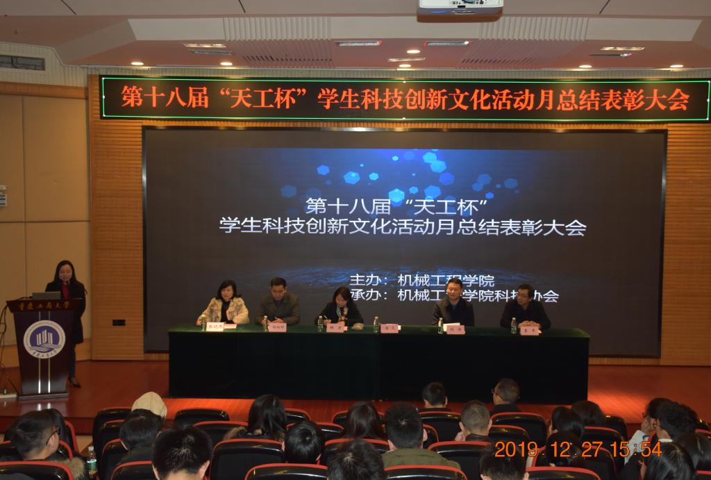 2019年12月27日,beat365在线体育第十八届“天工杯”员工科技创新文化活动月总结表彰大会在7200报告厅举行。学生处副处长潘焱,公司全体领导,活动赛事指导老师,公司部分专职教师和辅导员参加了表彰大会,会议由公司党总支副书记张晓琴主持。
