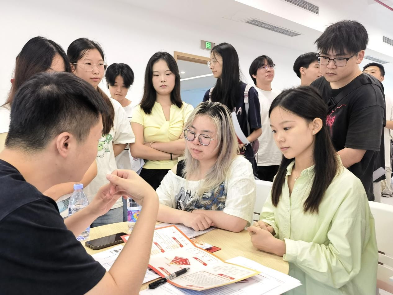 招聘会现场气氛热烈、秩序井然。毕业生们手持简历,主动与用人单位沟通交流、投递简历。公司领导与辅导员深入一线,详细了解企业招聘需求与员工应聘情况,现场指导毕业生准确定位、把握机遇。活动现场还专门设立了“引客入遂到安居”政策宣传点,为同学们系统解读了安居区在人才引进、落户安居、就业创业补贴等方面的优惠政策与配套服务。