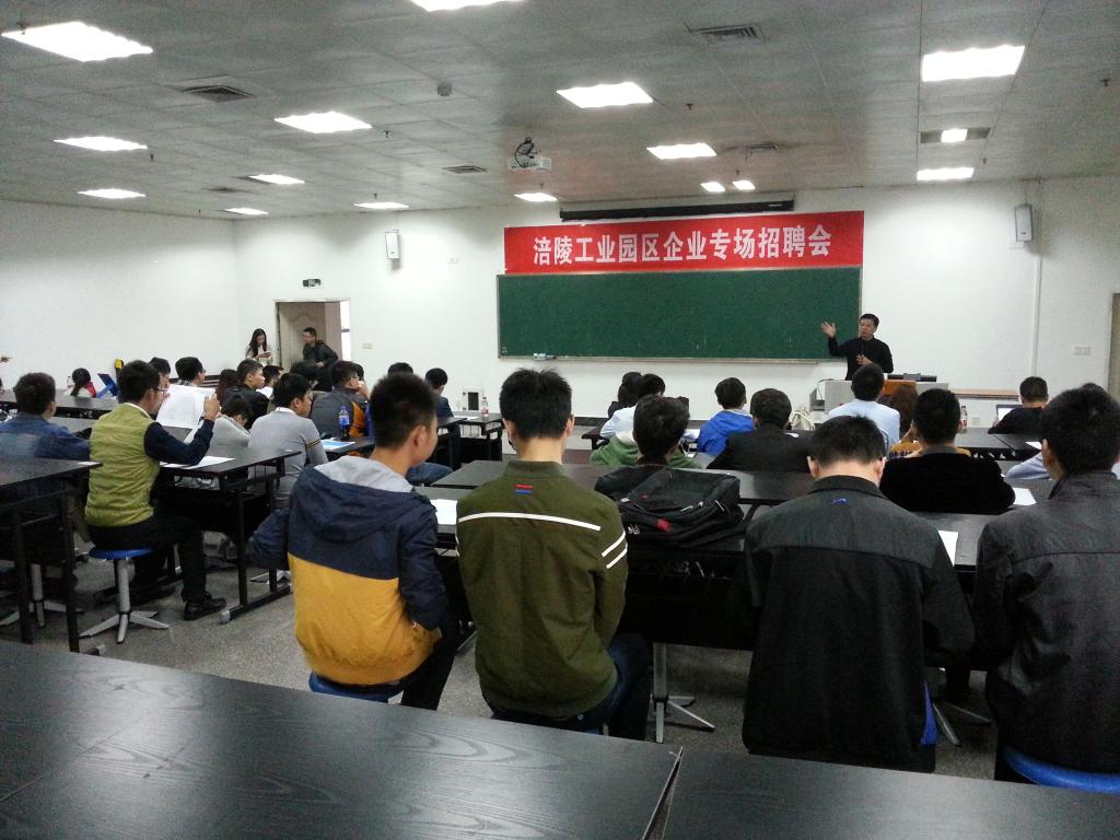 10月28日,由beat365在线体育承办的涪陵工业园区企业联合招聘会圆满落幕。重庆金通威科技有限公司、重庆三爱海陵实业有限责任公司、重庆南瑞博瑞变压器有限公司、华兰生物工程重庆有限公司、华通电脑(重庆)有限公司、重庆盛时达汽车有限公司、重庆伟柯斯汽车排放控制系统有限公司、重庆特发信息光缆公司、重庆喜旋生物科技有限公司9家企业参加了此次联合招聘,主要面向机械类、生物制药类、管理类、会计类、销售类等十多类专业进行招聘。