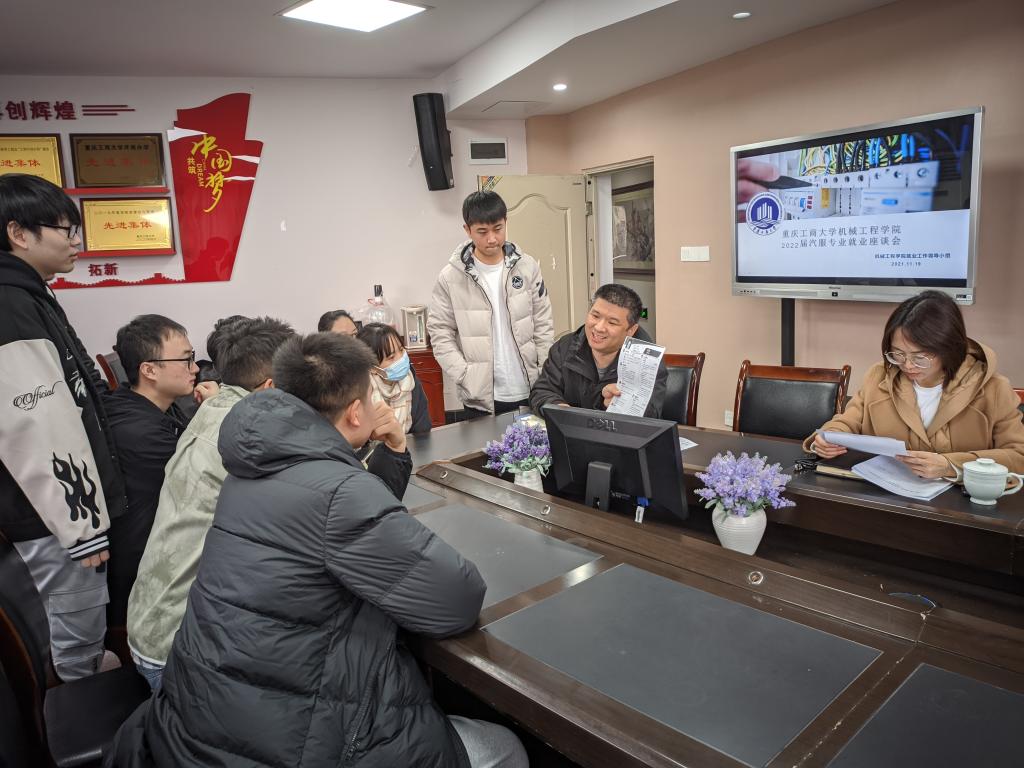 为深入学习贯彻党的十九届六中全会精神,落实党中央国务院稳就业、保就业决策部署,在总结2021届公司毕业生就业工作经验的基础上,beat365在线体育提前研判、提前部署,11月19日,公司就业工作领导小组召开2022届汽车服务专业毕业生首场就业推进会。公司党委书记杨娟、经理杜力、汽车系主任杨智宇、就业联络员袁娅婷、毕业班辅导员周利民及汽车服务专业22名毕业生参加了会议。