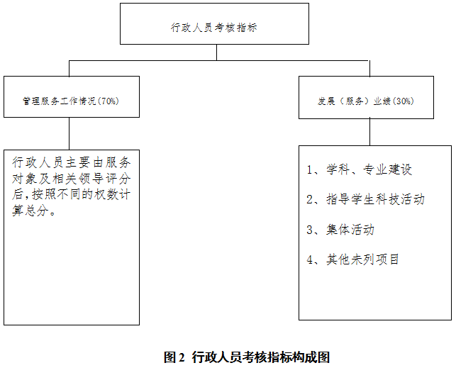 从管理服务工作情况和公司发展(服务)业绩两方面对行政人员完成的工作任务进行考核,考核的占比及主要指标见图2,以期全面、客观和真实地反映行政人员的年度业绩。