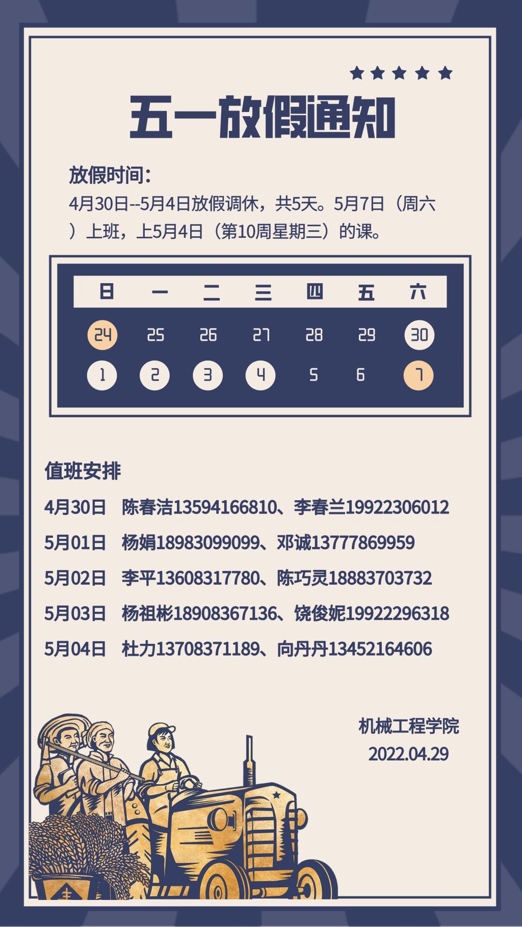 beat365在线体育五一放假通知及值班安排