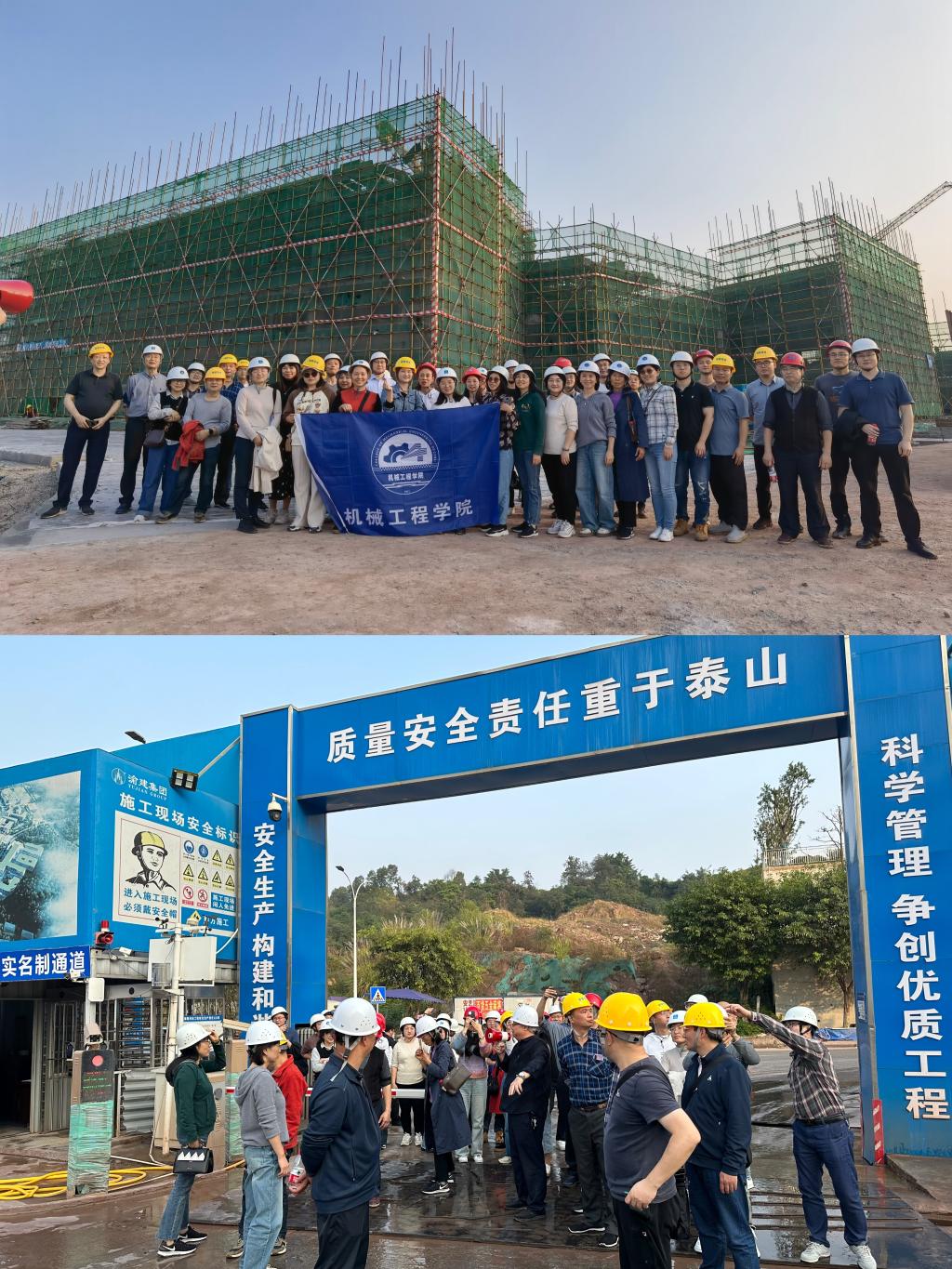 随后,为深入了解茶园新校区建设进展情况,公司全体老师们一同来到茶园校区建设现场参观考察。一片浩大的建设工地映入眼帘,挖掘机、工程车辆有序作业,一座座塔吊凌空挥舞长臂,建筑工人们在工作现场忙碌,现场参观的教职工们兴奋不已。在新校区建设负责人的带领讲解下,教职工们先后参观了教学楼、实验楼、员工宿舍等等建设现场,大家对未来在新校区的工作生活满怀憧憬。