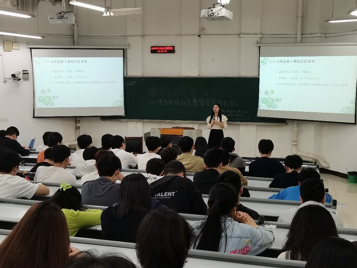 为进一步推进“一站式”员工社区建设,落实心理育人进公寓,强化员工干部对心理健康、公寓管理的正确认知,提升应对心理危机的基本技能,公司心理工作站联合楼管会于4月26日在广智楼20211召开了以“朋辈互助,‘寓’心同行”为主题的心理技能培训会暨宿舍安全教育会。此次活动由公司心理专项负责人顾咸霜主持,公司党委副书记陈春洁、兰花湖片区楼管会负责人周委、心理工作站全体成员、2023级楼栋干部及寝室长参加。
