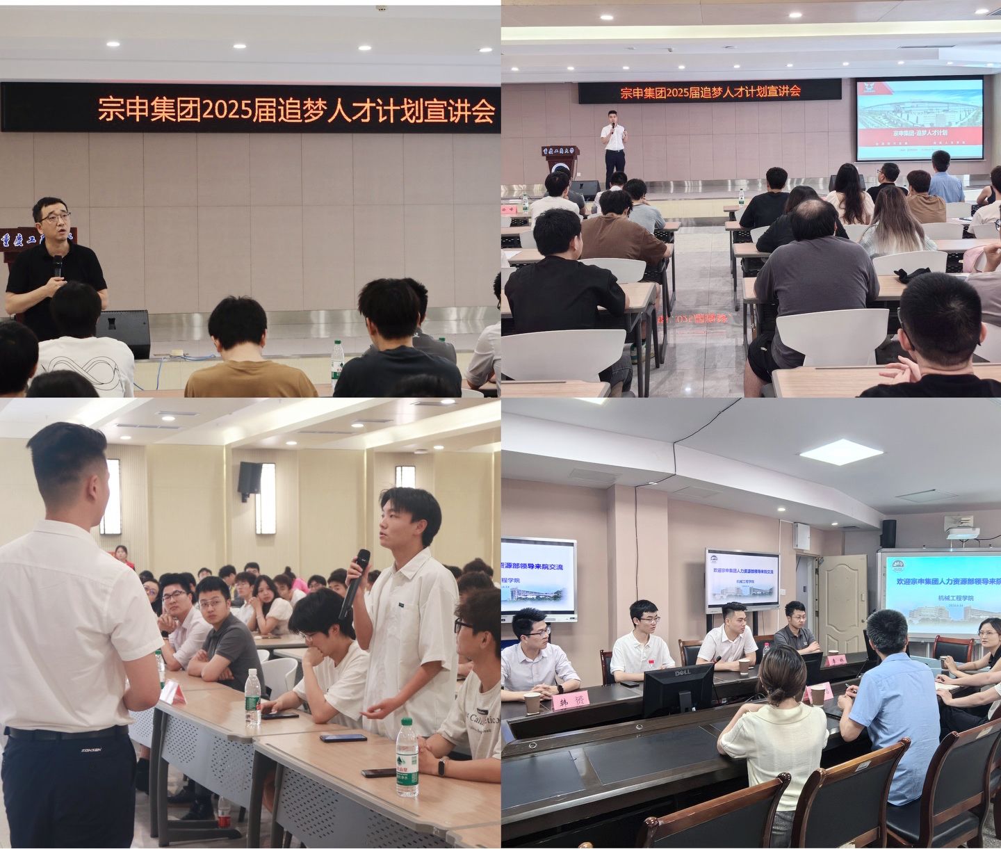 宗申集团艾豪详细介绍了宗申集团的发展历程、业务领域、企业文化以及未来发展战略,他表示“追梦人才计划”是宗申集团联合重庆工商大学全新打造的顶尖人才项目,旨在定向选拔孵化一批践行宗申集团文化价值观的专业化、复合化、国际化人才,并就具体的人才引进需求、人才选拔流程、人才培养方案等进行了详细介绍。在宣讲会互动环节,同学们就本次追梦人才计划的具体安排、培养内容及职业发展通道等问题与企业招聘负责人进行了互动交流。