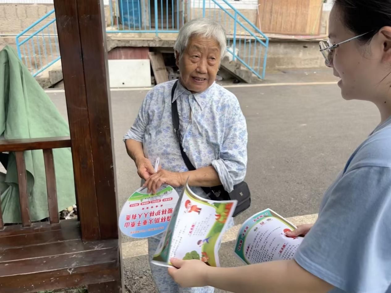 为了让防火知识更加接地气、入人心,实践团还巧妙地将知识融入日常用品之中——那些精美的森林防火扇子,在炎炎夏日里不仅带来了凉爽,更在每一次扇动间,将防火的种子播撒进了每个人的心田。居民们在享受清凉的同时,也潜移默化地增强了防火意识,学会了如何在日常生活中守护这片绿色。
