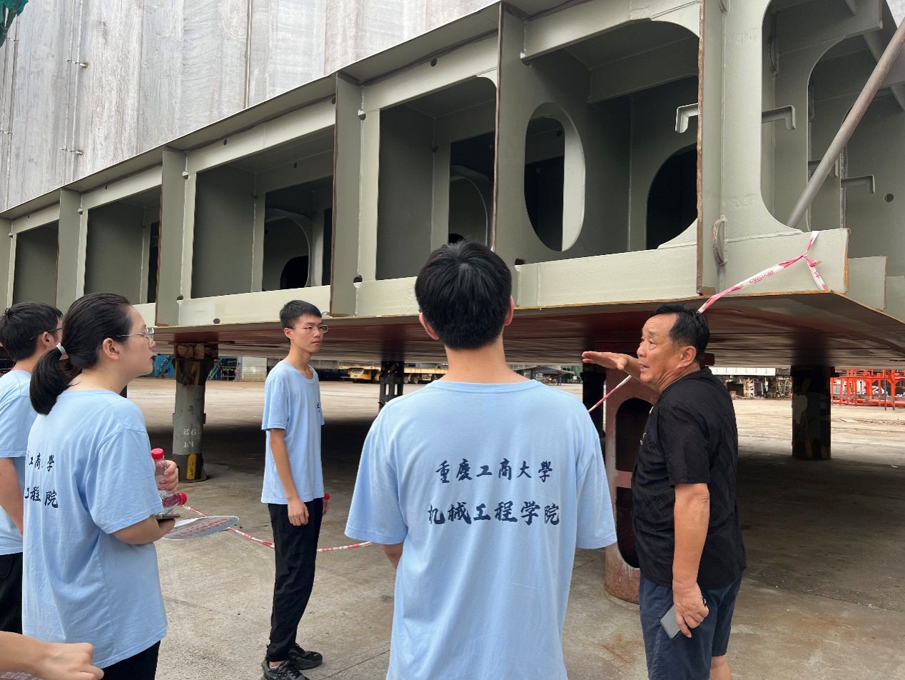深入厂房内部,杨诚先生如同一位经验丰富的导师,耐心地向队员们讲解着造船的每一个精细流程:从设计图纸的匠心独运,到原材料的严格筛选;从船体结构的精密焊接,到船舶下水前的全面检测……每一个细节都彰显着造船人的精湛技艺与不懈追求。队员们听得入神,仿佛亲身参与了这一从图纸到巨轮的壮丽蜕变过程。