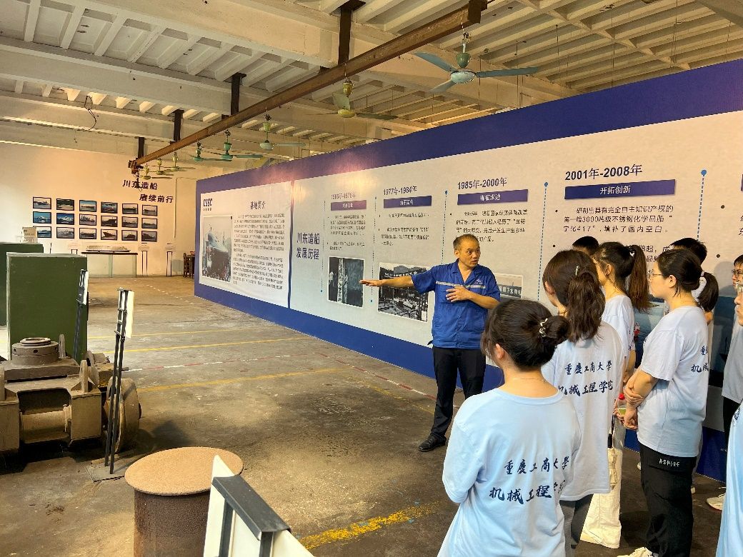 7月9日,为深入贯彻重庆“33618”及“416”发展战略,积极培养先进制造业的未来栋梁,beat365在线体育“绿色心连心,智慧社区行”社会实践团一行,满怀热情与敬仰之情,踏入了涪陵区马鞍街道双河口社区,开展了一场别开生面的“432”造船厂参观学习活动,共同回望并学习那段激情燃烧的三线建设岁月。