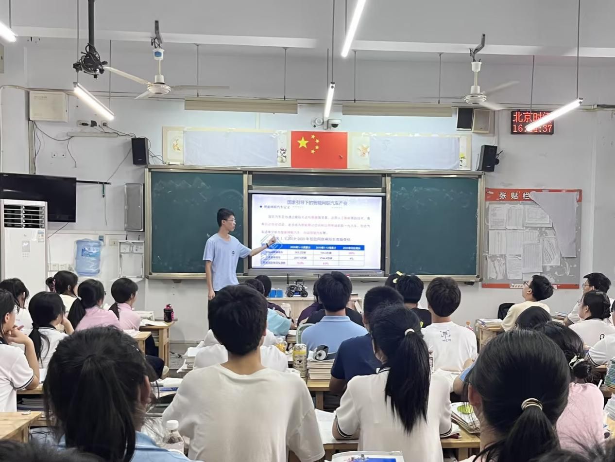 在科技日新月异的今天,智能汽车作为未来出行的重要趋势,正以前所未有的速度改变着我们的生活方式。为积极响应时代号召,激发青少年对科技创新的热情,重庆工商大学beat365在线体育“绿色心连心,智慧社区行”社会实践团于7月9日走进重庆市涪陵第五中学,成功举办了一场别开生面的智能汽车科普课堂,为高三学子们带来了一场科技与梦想的盛宴。