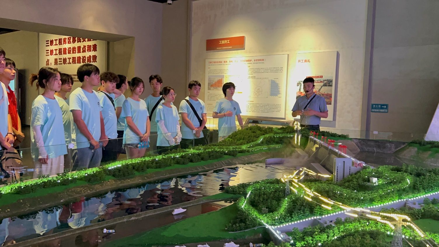 在讲解员的生动讲解下,“匠小青”团队的成员们详细了解了三峡大坝修建背后的故事,包括迁坟、外迁安置20万移民、后靠安置等复杂而艰巨的任务。特别是2008年三峡大坝提前一年达到175米蓄水位,这一成就的背后,凝聚了无数移民和移民干部的辛勤与汗水。讲解员还特别提到了徐继波作为迁移上海的第一人,他不仅积极响应国家号召,还慷慨捐赠了珍贵文物,展现了三峡移民深明大义、顾全大局的高尚情怀。