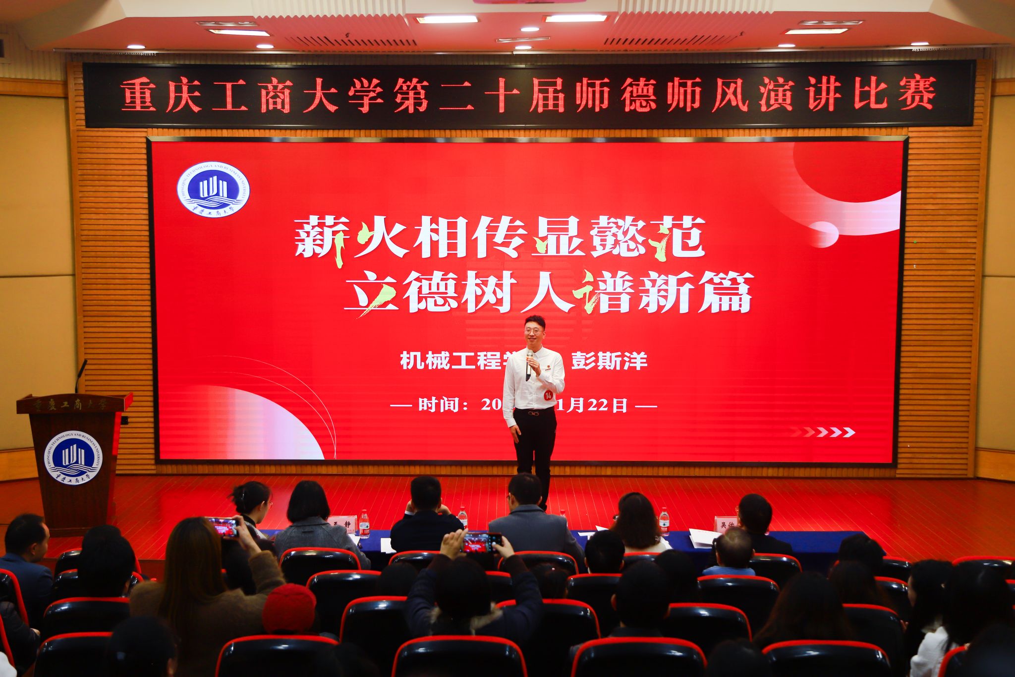 2024年11月22日,重庆工商大学第二十届教职工师德师风演讲比赛在博智楼7200报告厅举行。经过激励角逐,公司机械设计制造及其自动化系青年博士彭斯洋在决赛中脱颖而出,喜获二等奖,beat365在线体育荣获最佳组织奖。