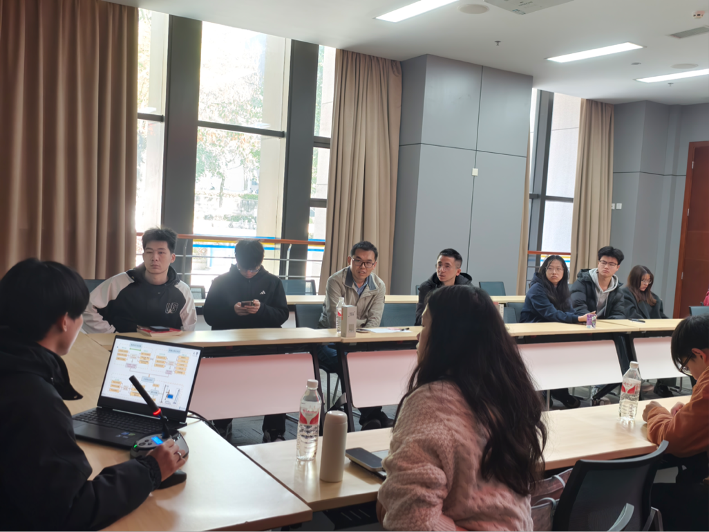 本次论坛,共7名研究生依次汇报各自研究的进展以及取得成果。王晨阳在《考虑能耗的激光淬火–抛光复合工艺参数优化》的报告中,详细阐述了此研究聚焦于激光淬火–抛光复合工艺,在确保加工质量前提下对工艺参数进行优化以降低能耗,有效提高了加工过程的能源利用效率。研究成果为激光淬火–抛光复合工艺在实际生产中的节能应用提供了重要参考。施长成围绕《固液混熟装备高压过流表面冲蚀磨损机理研究》进行了汇报,阐述了在固液混熟装备运行时,液体携带的固体颗粒以一定的速度和角度冲击高压过流表面,造成材料的流失和损伤,为了减轻冲蚀磨损选用了耐磨性能优良的材料并对表面进行了耐磨处理,为冲蚀磨损的处理提供了重要参考。汪游波就《盘式制动器噪声源识别与优化》进行了分享,在噪声源识别方面,通过多种技术与方法进行探究;在优化措施上也从多方面入手。经过试验验证这些优化措施能有效降低盘式制动器噪声,提升其NVH性能,为解决盘式制动器噪声问题提供了有效途径和方法。谭晓龙分享了《基于自适应驾驶意图的多模态车辆轨迹预测方法》的研究成果, 本研究提出创新方法。基于自适应驾驶的车辆轨迹进行了预测,通过训练和场景编码生成多模态轨迹,模型简洁且可训练性佳,为车辆轨迹预测提供了参考。蓝骏分享了《上肢康复训练两转一移并联机构运动性能分析与尺度优化》的研究成果,通过对上肢康复训练两转一移并联机构的运动性能分析和尺度优化,取得了一定的成果。优化后的机构在工作空间、运动灵活性和能耗等方面表现更优,为上肢康复设备的设计和改进提供了有效参考。覃磊围绕《基于RGB图像的实时6自由度位姿估计和三维抓取方法》进行了分享,通过试验实现了实时6自由度位姿估计和三维抓取。在机器人视觉与操作领域,此方法对提升机器人智能化和自动化水平至关重要。最后,胡圣东就《面向城市交叉口的跟驰场景分析与风险评估》进行了汇报,基于面向城市交叉口的跟驰场景进行了分析与风险评估,并提出针对性的防控建议,能有效降低交通事故发生率,提升交通系统的安全性与通行效率。