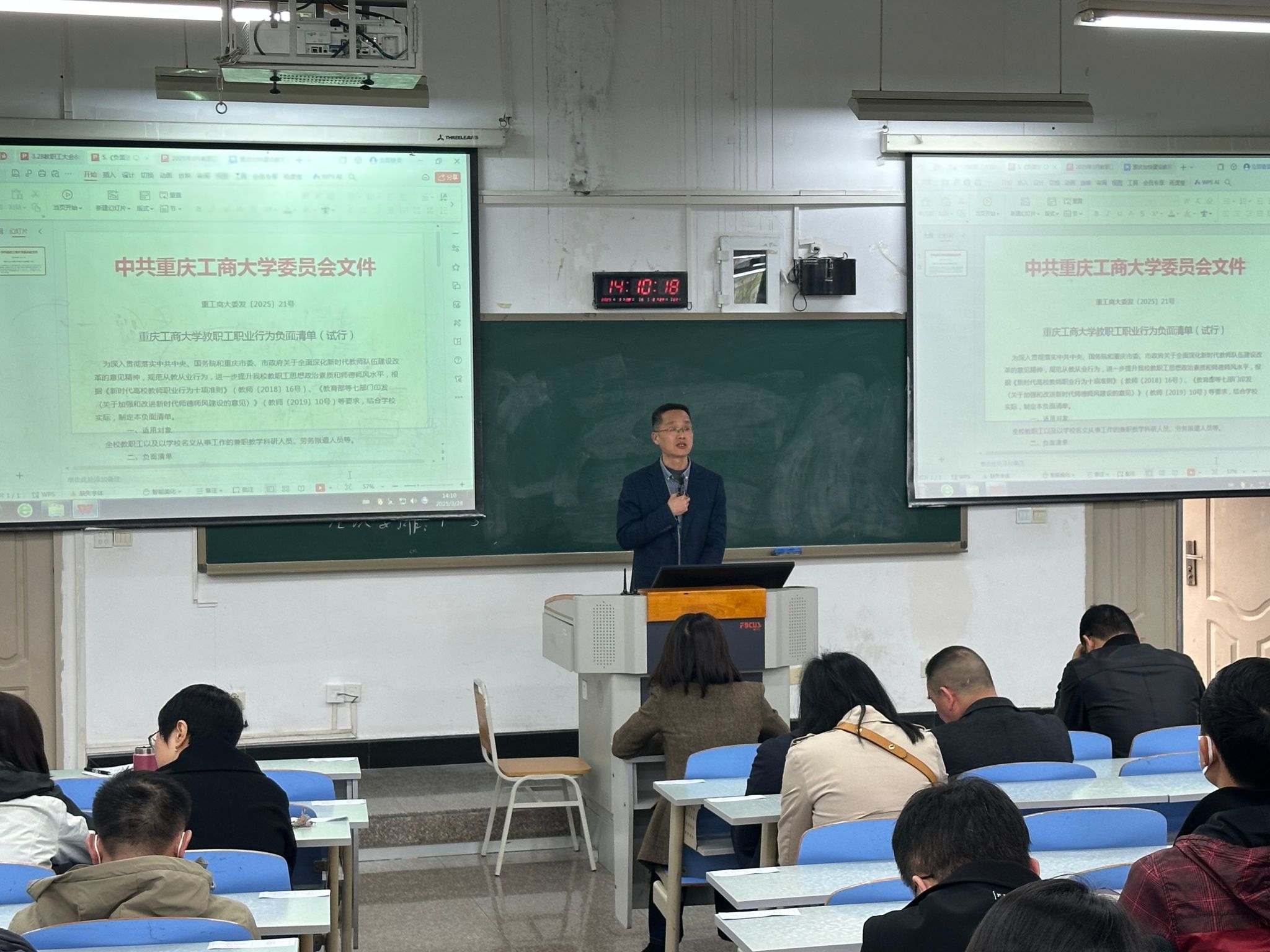 会上,公司副经理杨帅对习近平总书记关于教育的重要论述以及教育家精神的科学内涵、核心要义、实践路径等进行深入解读。公司党委副书记陈春洁传达学习了重庆工商大学师德师风建设大会精神,组织学习了《重庆工商大学教职工职业行为负面清单(试行)》。