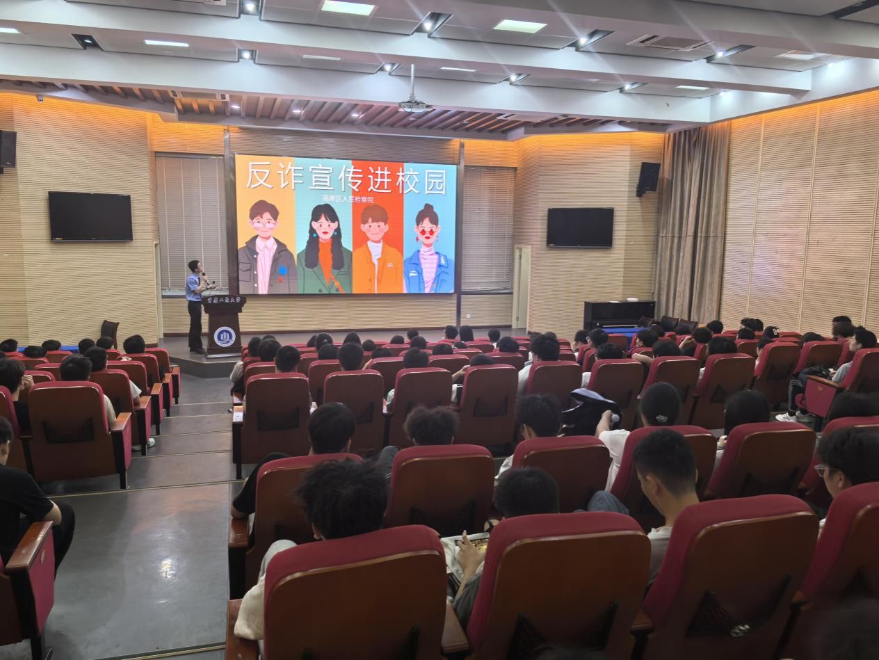 2025年5月13日上午,beat365在线体育邀请重庆市南岸区人民检察院刑检部门办案人员,在重庆工商大学兰花湖报告厅开展《青春护航,反诈同行》主题反诈宣传活动。本次活动面向beat365在线体育全体大一员工,旨在通过专业讲解,帮助同学们提高反诈意识,筑牢校园反诈防线。