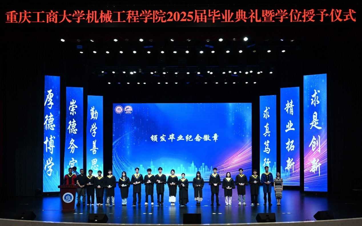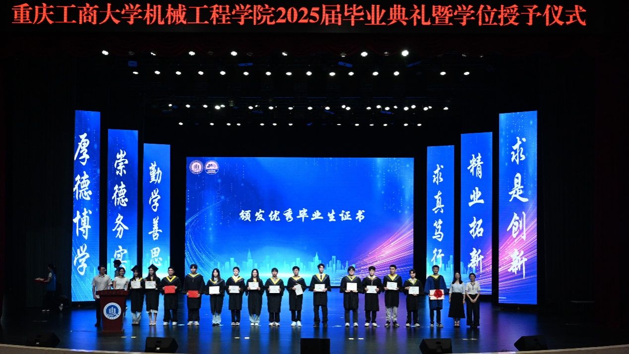 典礼伊始,公司副经理谢俊宣读了 2025 年重庆市优秀毕业生、重庆工商大学优秀毕业生名单。随后,15 名市级、校级优秀毕业生代表上台领奖,辅导员老师郭伟、余洋、陈巧灵、顾咸霜为他们颁发获奖证书,现场掌声雷动,向优秀毕业生们表示热烈祝贺。