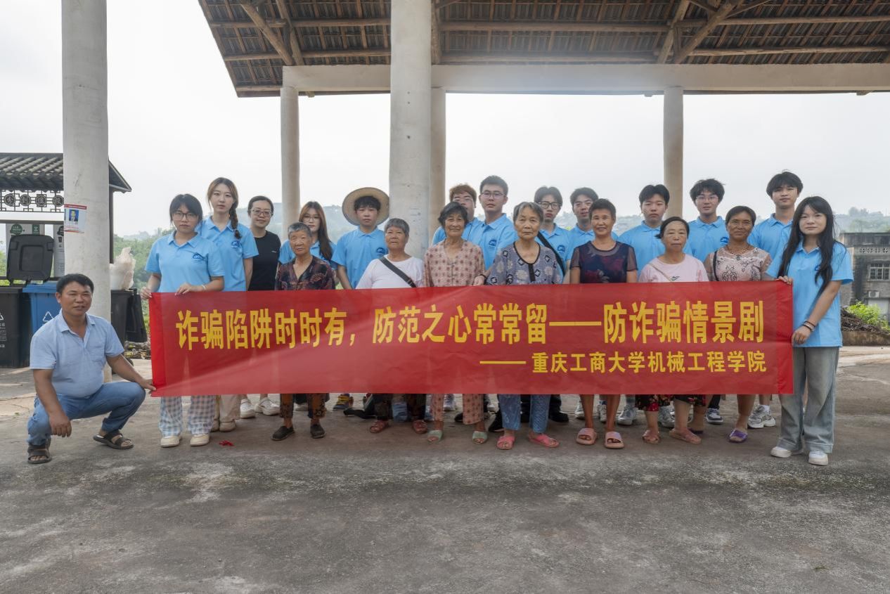 7月8日上午,为增强村民防诈骗意识,提升防范诈骗能力,重庆工商大学beat365在线体育“红岩铸魂乡土情,机械赋能振兴梦”社会实践团在重庆市江津区支坪镇白溪社区开展 “诈骗陷阱时时有,防范之心常常留” 防诈骗情景剧活动,通过生动演绎常见诈骗场景,为当地村民带来了一场实用的反诈知识科普。